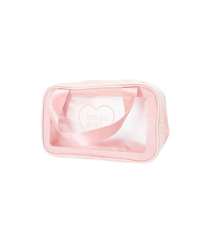 La cosmetiquera rosa y transparente de Beau Visage es un accesorio diseñado para organizar y transportar productos de belleza. Se caracteriza por su diseño fresco y juvenil, con el distintivo color rosa de la marca.