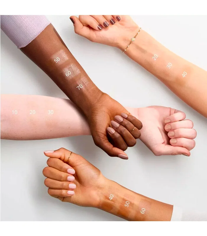 Base líquida con cobertura ligera para un brillo natural en tono medio. Se puede utilizar bajo o sobre el maquillaje. Cobertura ligera para un cutis suave e impecable