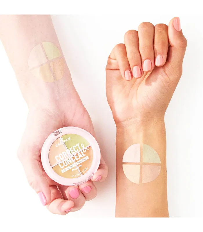 Ilumina, equilibra y disimula con la paleta correctora de color essence CORRECT & CONCEAL 10. Esta paleta cremosa de tonos pastel ofrece cuatro tonos correctores para corregir todo tipo de imperfecciones. Los tonos rosa y melocotón ayudan a reducir visiblemente las ojeras, el beige cubre las zonas irregulares y el verde neutraliza el enrojecimiento, todo en un práctico estuche compacto que cabe en cualquier bolso. Su textura suave y sedosa se difumina a la perfección y está especialmente desarrollada para pieles claras. Tanto si te preparas en casa como si necesitas un retoque rápido fuera de casa, esta paleta es el paso previo perfecto al maquillaje, en cualquier momento y lugar.