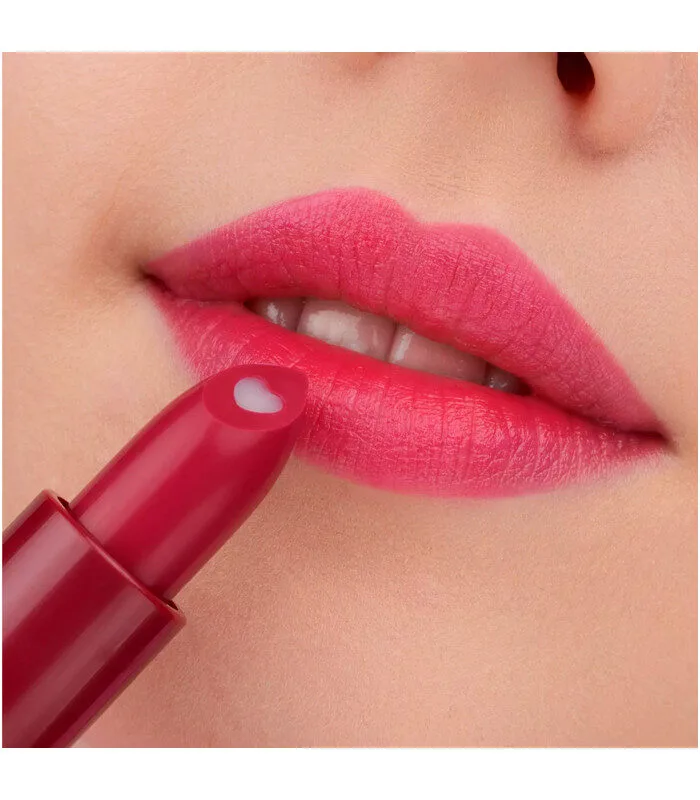 - Bálsamo labial con un nutritivo núcleo en forma de corazón y una fragancia frutal