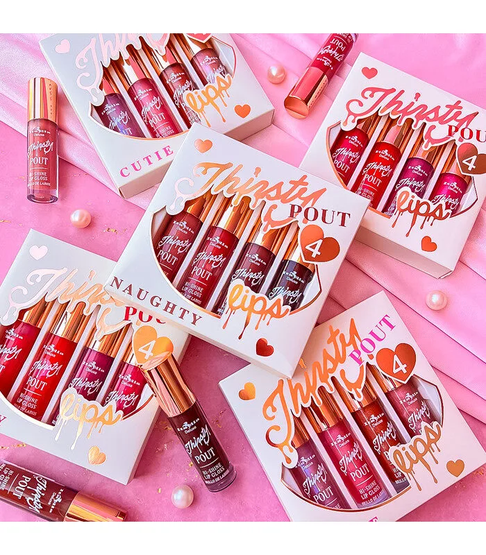 Frunce el ceño con nuestro Set Thirsty Pout 4 Lips! Con cuatro brillos labiales ultrabrillantes e hidratantes, cada set es perfecto para cualquier estado de ánimo: