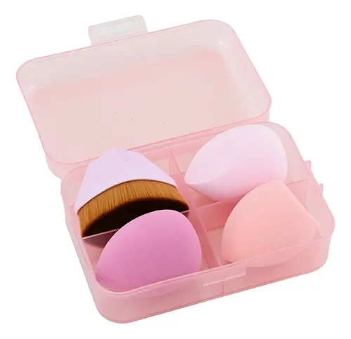Kit compuesto por vincha facial y esponjas de maquillaje para aplicación de productos cosméticos.