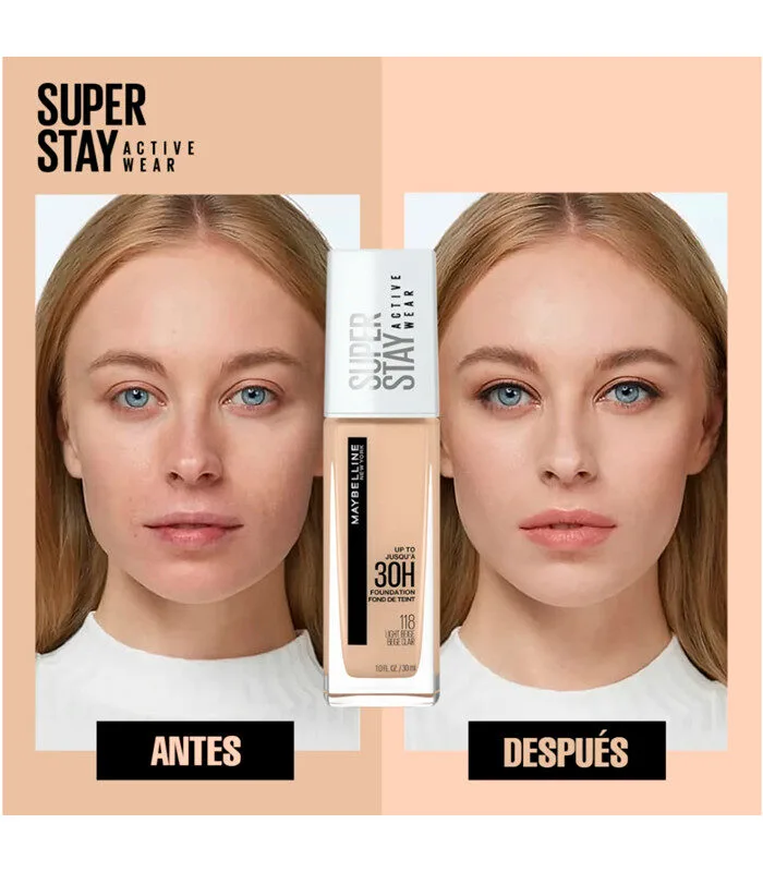 - La base de maquillaje de cobertura total Super Stay® de Maybelline ofrece una cobertura concentrada durante 24 horas y un acabado impecable que no se desvanece ni cambia durante todo el día.