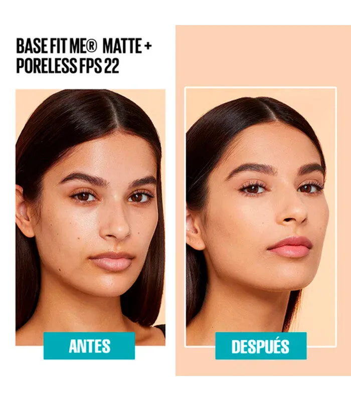 - Maquillaje facial de base de maquillaje Fit Me® Matte + Poreless. Esta base de maquillaje ligera matifica y afina los poros para un acabado natural e impecable.