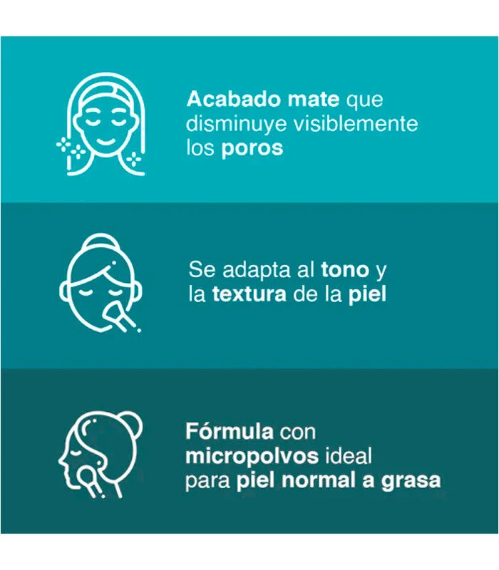 Ideal para piel de normal a grasa, nuestra exclusiva fórmula de base de maquillaje mate contiene micropolvos para controlar el brillo y difuminar los poros.