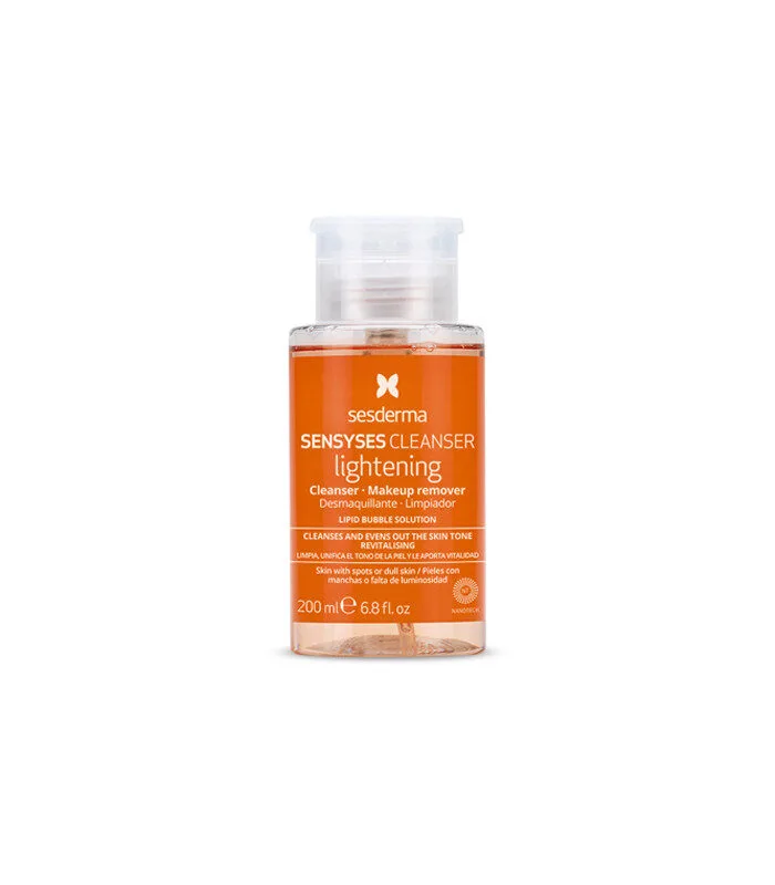 Sesderma Sensyses Cleanser Lightening es una solución liposomal desmaquillante y limpiadora que además de limpiar ayuda a unificar el tono de la piel ya reducir la apariencia de las manchas aportando luminosidad al rostro.